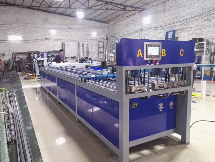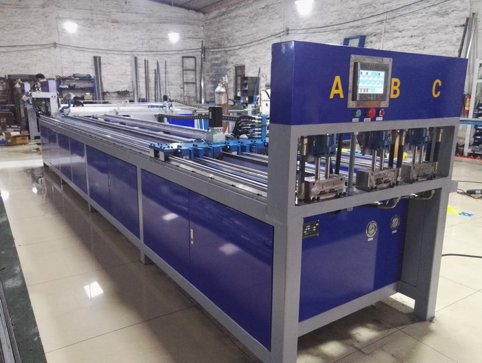 福建漳州客戶今年第二臺(tái)三工位數(shù)控全自動(dòng)沖孔機(jī),三工位同時(shí)工作,一次沖6支管,每個(gè)油缸可單獨(dú)控制沖全孔、半孔,大大提高不銹鋼防盜網(wǎng)沖孔效率,行業(yè)首創(chuàng),專利產(chǎn)品